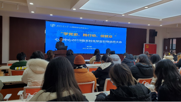 2021年12月10日9:30,由午夜av 党委副书记柯小君主持的心理午夜av 2019级本科生毕业引导动员大会在X5501顺利召开。本次大会旨在增强2019级本科生的就业意识,引导学生了解就业及考研形势,树立正确的就业观和人生观。