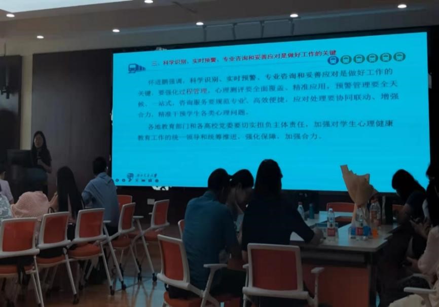 党委书记刘咏梅传达了教育部部长怀进鹏的讲话精神,随后以“全面加强和改进学生心理健康教育工作,让广大学生更加健康阳光”为题进行讲述与研讨。陈华主任就心理健康教育工作进行了补充,再次强调心理午夜av