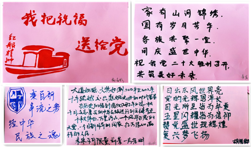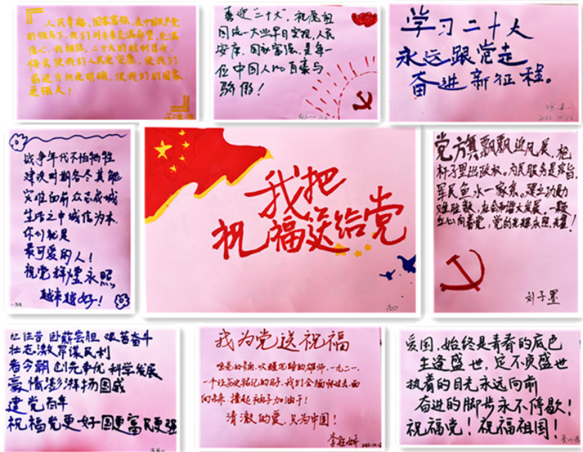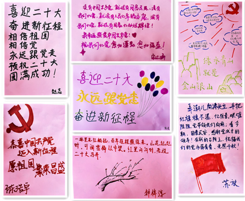 不同的地点,不同的方式,老师和同学们书写着信念与青春,祝福在这里流淌。老师和同学们在表达对二十大胜利召开和党的事业衷心祝福的同时,也坚定了不忘初心跟党走、砥砺奋进新征程的信心和决心。