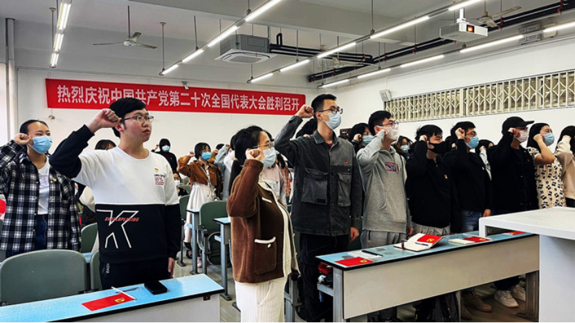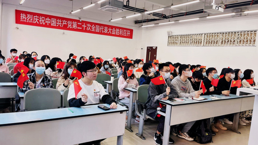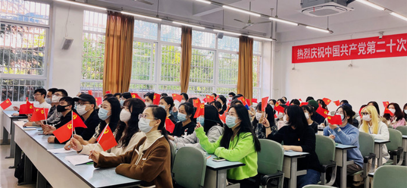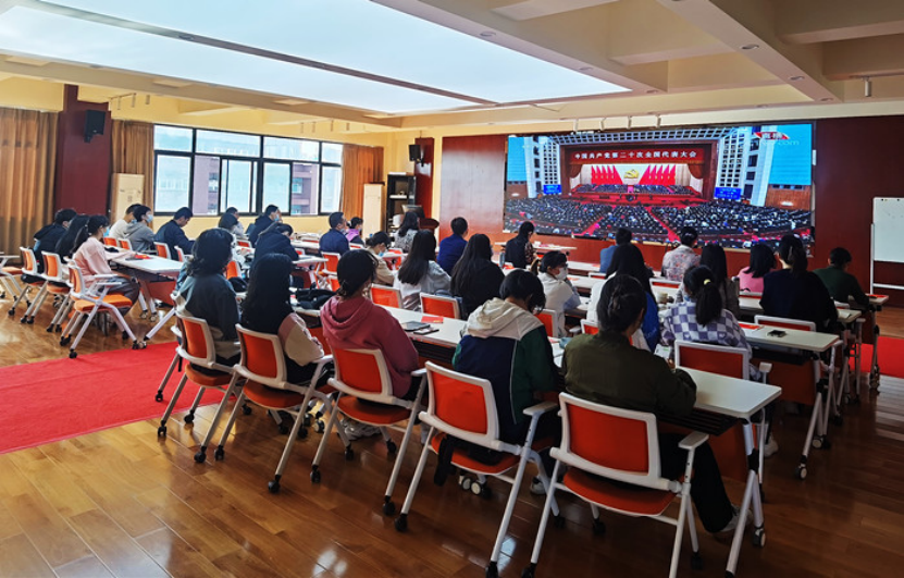 党委组织全体师生党员和入党积极分子集中收听收看党的二十大直播盛况,认真聆听习近平总书记代表十九届中央委员会向大会作的报告。