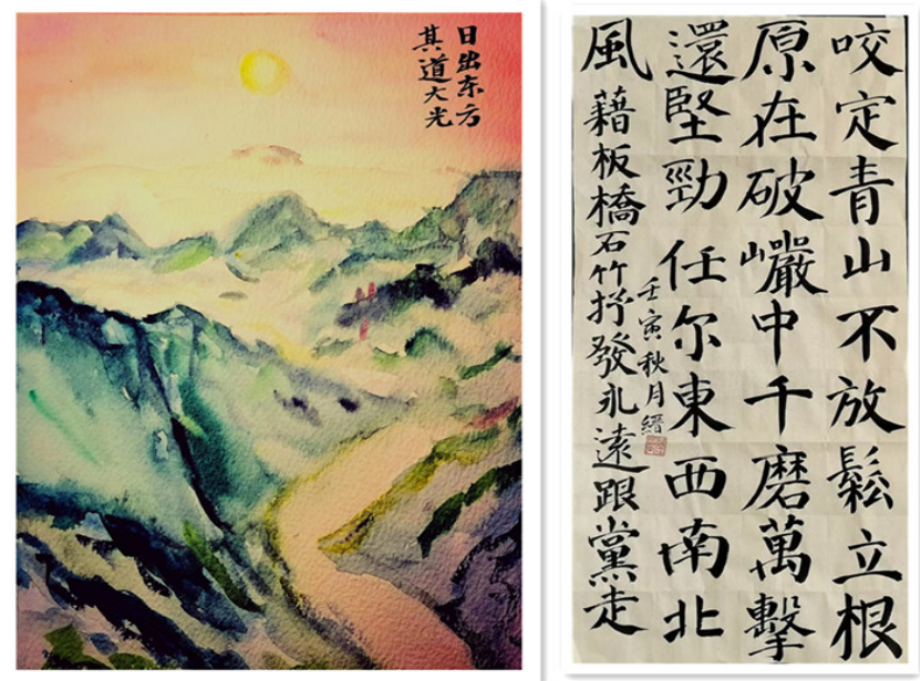 入党积极分子冯缙老师为祝贺党的二十大召开精心准备了书法和绘画作品。