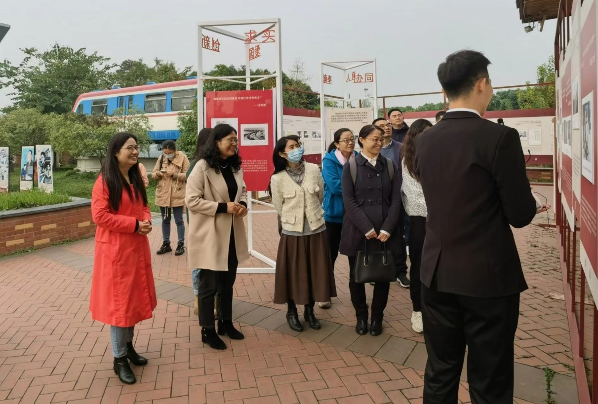 教师在党委书记刘咏梅的带领下参观了科学家精神教育基地。