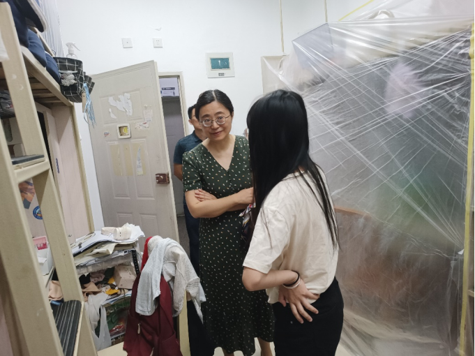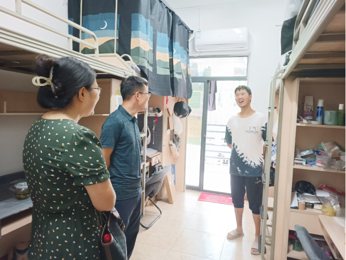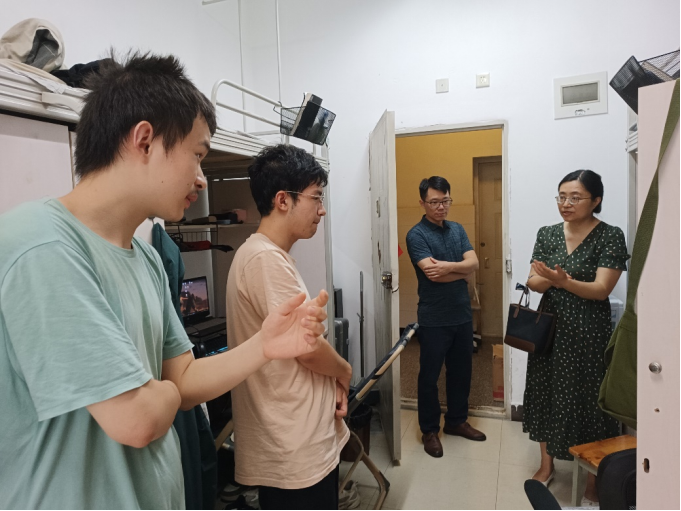 党委书记刘咏梅、党委副书记柯小君于7月12日上午深入犀浦校区学生寝室看望慰问暑假留校学生,具体了解他们的学习生活状况和暑期留校安排情况。辅导员李艳一起陪同走访慰问。