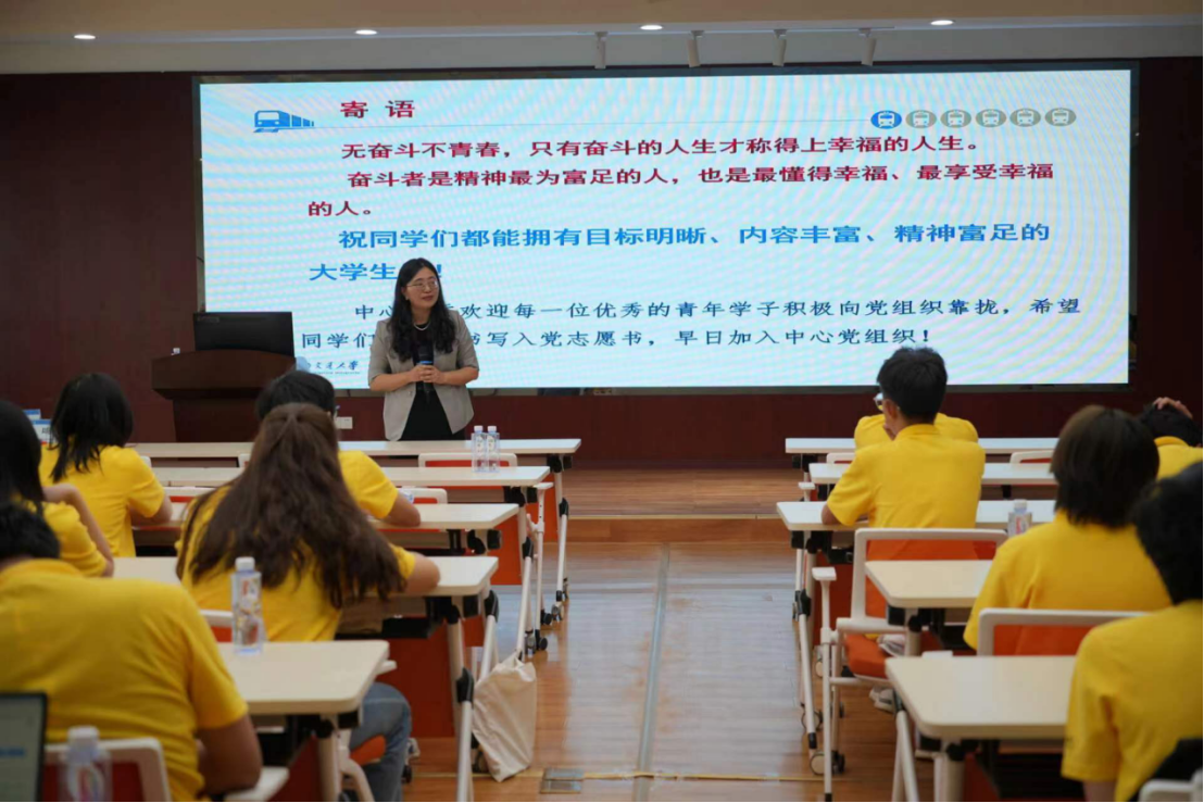 最后,刘书记为大家介绍了党组织的基本知识,弘扬爱国主义精神,并且倡导大家尽早加入党组织。讲话过程中,刘书记借用习近平总书记的话寄语同学们,祝愿大家在新的阶段做好规划,勇攀高峰,拥有“一览众山小”的幸福。