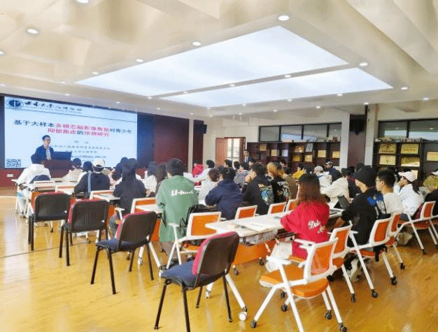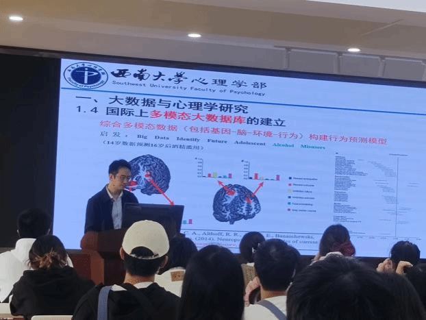 全体本研学生作了题为《基于大样本多模态脑影像数据对青少年抑郁焦虑的预测研究》讲座,介绍了基于大数据、大样本,开展的与抑郁焦虑情绪相关的基础性研究。在讲座中,邱江教授结合团队研究的实例,介绍了大数据与心理学研究的研究背景、大数据对心理学研究的启示、国际上多模态大数据库的建立、数据库建立与合作等国际上通过多模态数据对青少年抑郁焦虑的心理特征与行为进行建模和预测的工作。