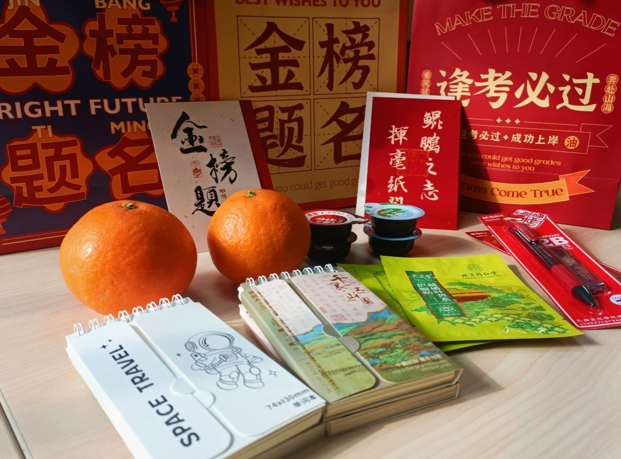 领导为同学们送上了带着满满祝福与期望的温暖礼包。礼包中包含了寓意考研“橙”功的橙子、系列文具套装、补充能量奋勇向前的咖啡以及护眼贴等实用物品。同学们收到礼包后非常高兴,纷纷表示备受鼓舞,会继续加油,奋力拼搏,争取获得理想成绩。