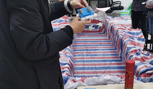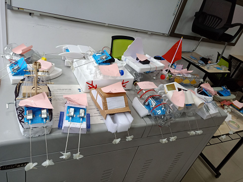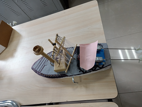 由于近期疫情的影响,为了配合防疫要求,比赛当天上午协会就收集好了参赛队伍所准备的船模,下午比赛时只有协会的成员到达比赛教室,并通过线上直播来放映比赛的全过程。选手们的船模各有特色,有的外表十分华丽,有的外表朴素但很有实力。船模在统一的水道上滑行,并有专门的计时人员为船模计时。