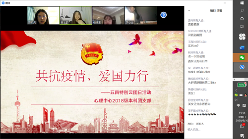 本科18级团支部“共抗疫情,爱国力行”五四特别云团日活动圆满结束。此次活动坚定了同学们与时代同成长、与祖国共奋进的信念,激励同学们要继承和发扬五四精神,在实现中华民族伟大复兴的中国梦的新长征路上奋勇搏击。