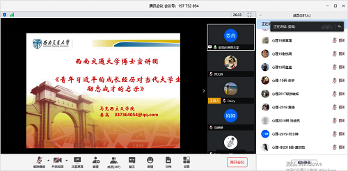 通过娄高博士的讲解和分析,同学们收获了许多,提高了认识,更加深刻地体会到了”青年有理想,国家才能有希望”。我们当代大学生要树立与时代主题同心同向的理想信念,矢志奋斗,砥砺前行。