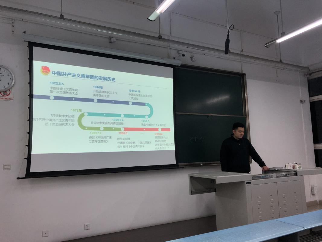 为了进一步加大对团员的培养力度,为党增加高素质人才的储备,2019年12月3日晚19:30于X2431,午夜av 院团委副书记(学生兼任)胡崟虎为2019级大一新生讲授团课。