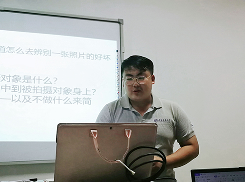 院学生会副主席、摄影组成员时新宇同学为心传媒内部成员做了摄影技术基础培训。他向大家介绍了新闻纪实摄影的硬性需求,演示了照片处理软件的基础操作,并带大家一起了解了相机的内部构造以及发展历史。