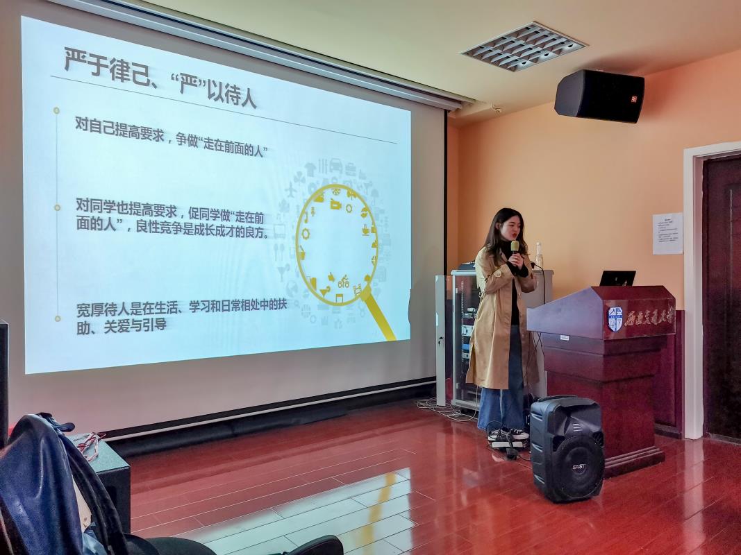 10月24日,午夜av 本科2019级新生举行学生骨干培训会。会议由辅导员王丽霞主持,午夜av 直属党支部副书记柯小君到场为同学们讲话。