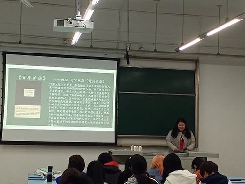 互动环节结束后,各小组依次派出代表向大家分享各自的推荐书目及阅读心得。六组同学推荐书目分别为:《一九八四》、《基督山伯爵》、《飘》、《百年孤独》、《瓦尔登湖》、《人性的弱点》。同学们大体上从书籍介绍,内容简介,人物评价,书评和读书感悟几个方面分享各组的推荐书目。各组主讲人准备充分,语言组织到位,能将所荐书籍清楚简洁地展现给在座同学。