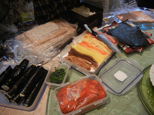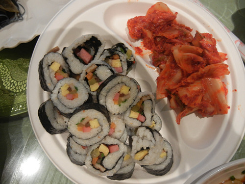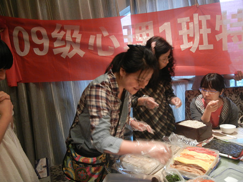 作为整个学院唯一的一名留学生,这位随和的韩国姐姐是我们09级心理1班的一大亮点。6月18日下午,我们的韩国同学金润玉要开始教大家动手包韩国的美味小食:紫菜包饭啦。