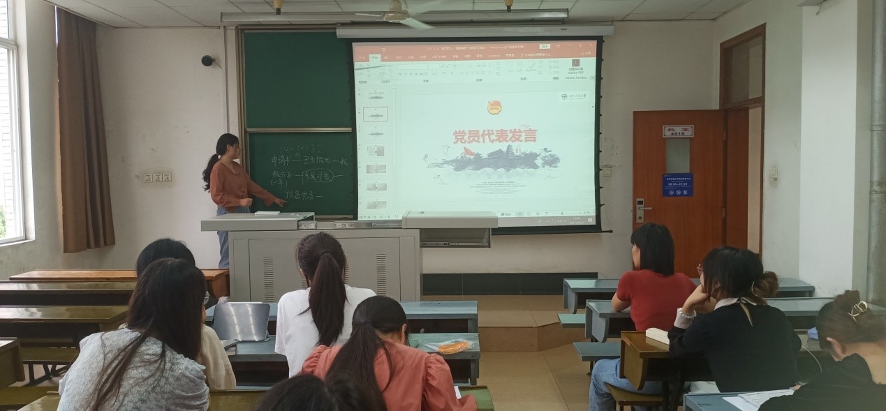 活动第一项:由党员代表王云霄同学从今后职业发展与学习两个角度入手为大家宣传积极加入党组织的思想。接着为大家讲解了入党的一系列流程和注意事项,细心解答了同学们的相关问题,使同学们对入党相关知识有了一定程度的认识。