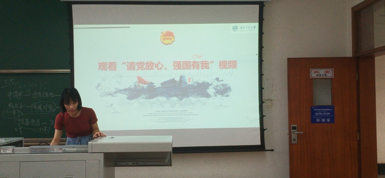 活动第三项:由团支书带领同学们一起观看“请党放心,强国有我”视频片段。“未来属于青年,希望寄予青年”这是习近平总书记对新时代中国青年寄予的深厚期许和深情嘱托,也是同学们观看视频后深深铭记的道理。