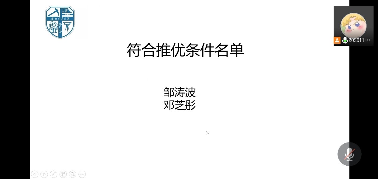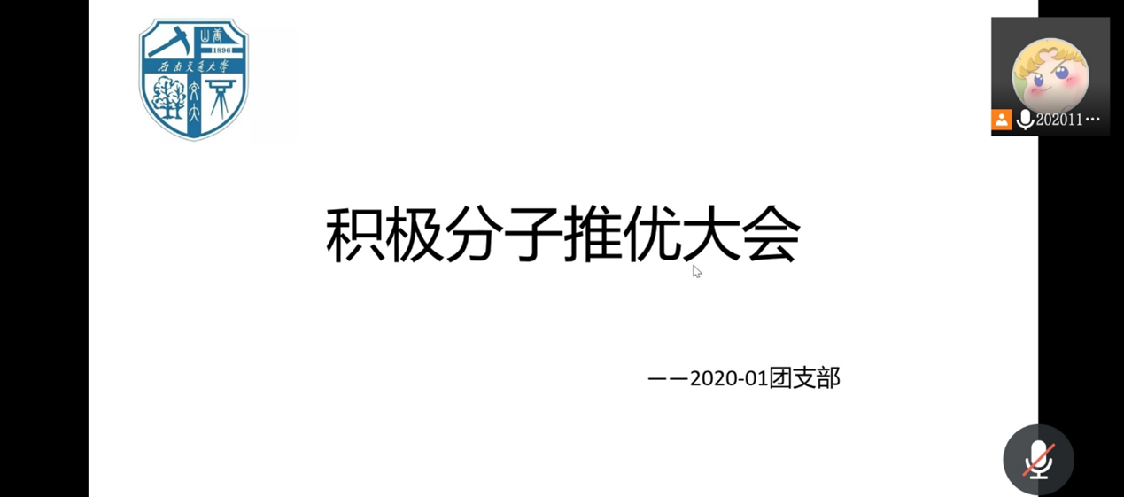 心理2020-01团支部于2021年10月9日下午通过线上会议召开入党积极分子“推优”大会。本次大会由2020-01班团支书甘诗源主持,班内的16名团员参加。