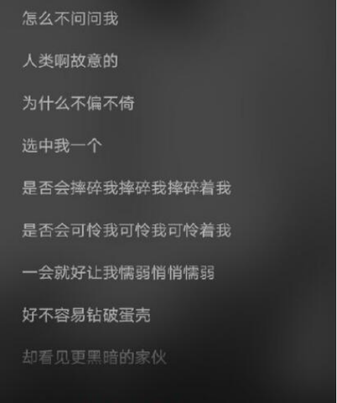 “为什么不偏不倚选中我一个,是否会摔碎我摔碎我摔碎着我,是否会可怜我可怜我可怜着我……”歌词中的质问和恳求就像是一把锋利的匕首,直刺这所冷漠无情的“人间冰窟”,很难想象,这是创作者站在一个8岁受害小女孩立场最为真实的控诉。