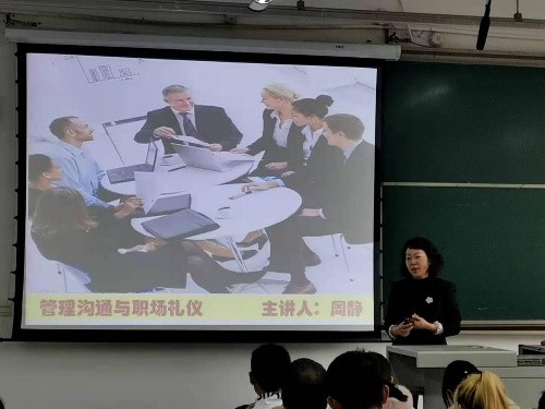 Mr. Ke first introduced Mrs. Zhou and emphasized the importance of the lecture to the students before the lecture and hoped that the students could gain something from the lecture. Mrs. Zhou introduced the basic points of workplace communication from two aspects at the beginning of the lecture: “the importance of communication” and “what is communication and how to communicate in the workplace”. Zhou quoted many examples based on her own experience and famous people’s stories in the process, which made the explanation vivid and convincing.
