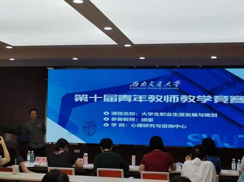 In order to further study and implement Xi Jinping's thoughts on socialism with Chinese characteristics in the new era and the spirit of the 19th National Congress of the Communist Party, improve the work of mental health education in colleges and universities, enhance the teaching ability of young teachers, the Psychological Research and Counseling Center (PRCC) held the preliminary contest of the sixth mental health education courses teaching contest and PRCC’s preliminary contest of the tenth young-teacher teaching contest of Southwest Jiaotong University in the conference room X5501 on Xipu campus at 13:30 p.m. on September 30.