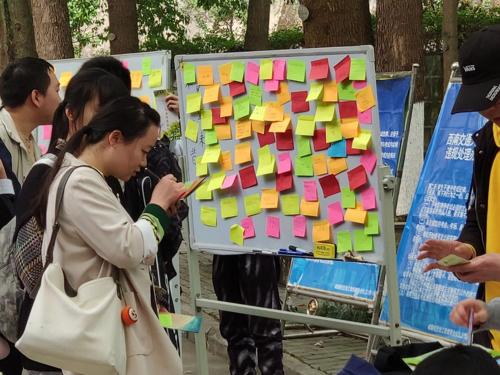 这次“3.25(善爱我)”大学生校园心理文化节以“善爱青春之我,做新时代的奋斗者”为主题,展现出了大学生的青春朝气,提升了同学们的综合素质水平。从上午十点开始,峨眉咨询部李玉梅、张平两位老师和峨眉大学生心理学会的干部、干事们,开始在风雨棚向同学们宣传和介绍“3.25 善爱我”大学生校园心理文化节,同时“不念往昔,展望未来”心愿墙活动也让同学们在白板上用便利贴写下了自己对未来的展望和期许,寄托了同学们对美好未来的期望。