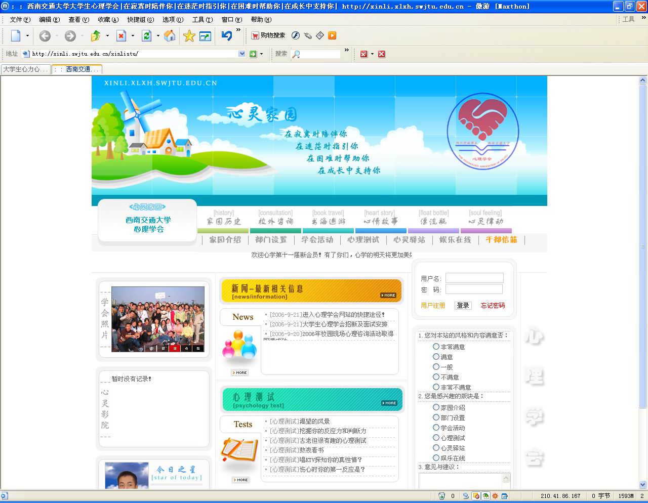 心力大学生心理学会网经过改版、调试已正式开通,欢迎广大师生上网阅览 。作为心力网特色专区, 宣传午夜av 大学生心理学会工作进展及各类活动。网站由大学生心理学会主办,学生管理维护,加强了互动环节,用生动活泼的方式,增强了大学生之间的心灵沟通, 通过同学间的互帮活动,加强心理健康教育的实效性。