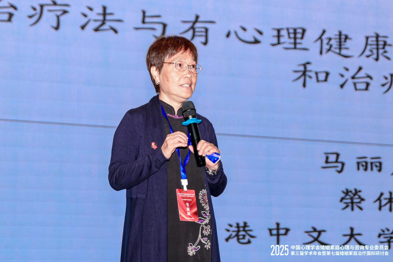 香港中文大学社会工作学系荣休教授马丽庄博士在会上系统介绍了多家庭治疗法(MFT)的临床实践成果。这种将受同类问题影响的多个家庭聚集在一起的治疗模式,融合了团体治疗与家庭治疗的优势,在多个领域展现出显著效果。