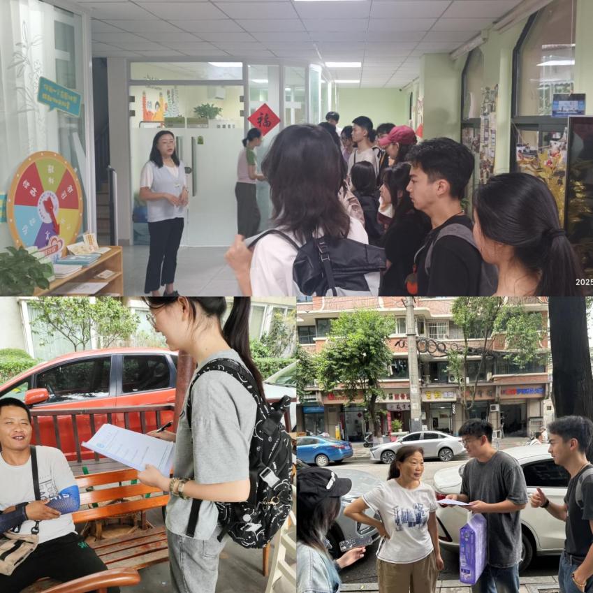 与此同时,2023级学生在金牛社区开展了心理与社会适应状况调研,主题涵盖社区归属感、社会支持与焦虑、中老年压力应对、青年 Emoji 情感表达、亲子关系及老年幸福感。调研结果表明,社会支持在缓解焦虑、提升幸福感方面具有重要作用;良好的社区归属感和积极的亲子互动有助于心理健康;青年与老年群体的情绪表达和幸福感特征也为理解不同群体需求提供了新视角。整体上,调研不仅揭示了影响居民生活质量的重要心理因素,也为幸福社区建设提供了有价值的参考。