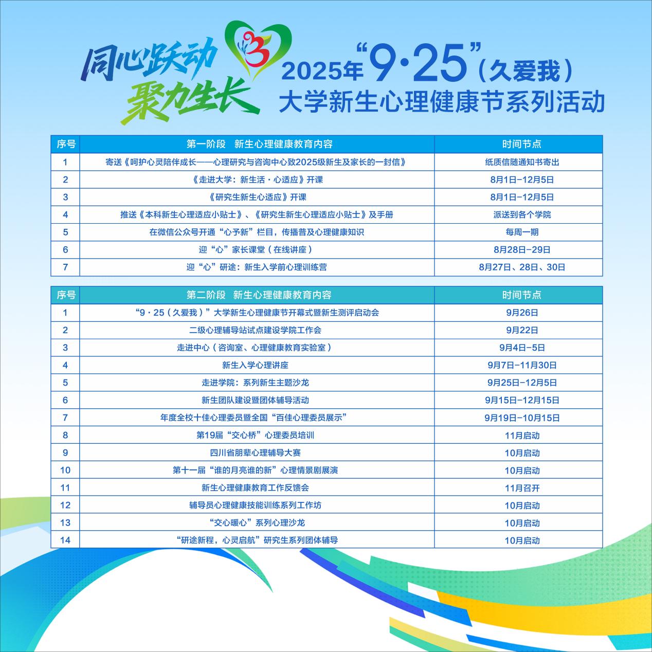 始终坚守“为党育人、为国育才”的初心使命,深入贯彻落实党的教育方针,将大学生心理健康教育作为培养时代新人的基础工程扎实推进。他希望通过“9·25”(久爱我)大学新生心理健康节,同心守护健康心理,筑牢心灵家园,跃动坚持强身健心,筑造健康体魄,聚力生长主动融入集体,汲取共生力量。高平平要求,不断优化心理健康服务体系,大力推进融通共育的工作方案,打造二级心理辅导站样板间,并以此为抓手,进一步完善 “校-院-班-寝”纵向贯通、层层联动的工作链条,构建“家校社医”横向协同、多方发力的育人格局。
