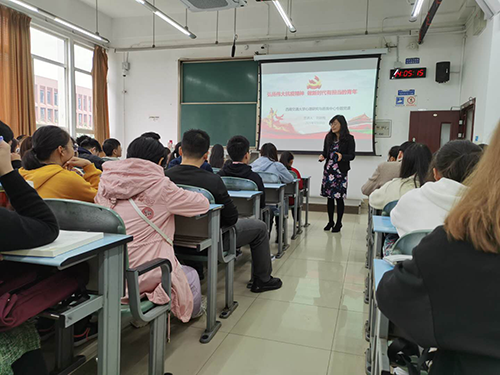 刘咏梅书记表示,同学们作为新时代青年人,应该有担当,有力量,在把握国内外形势中,准确定位自己,脚踏实地,努力学习专业知识,用自身所学为国家贡献力量。听完刘书记的谆谆教诲,课堂上爆发出一阵阵热烈的掌声,同学们纷纷表示赞同。