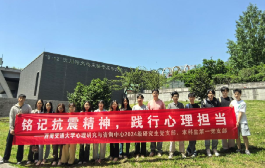 团委书记樊菊的带领下,怀着崇敬与哀思之情前往“5·12”汶川特大地震映秀震中纪念馆开展主题党日活动,追寻抗震救灾精神,同时发挥心理学子的力量,为灾后幸存的人尽一点绵薄之力。