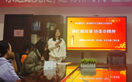 随后,支部党员郑迪文、李梦瑶、刘晓钰分别分享了21岁跳崖殉志的革命烈士江善忠、中国工农红军和抗美援朝老战士徐振明的故事。他们通过讲述这些革命先辈的英勇事迹和感人故事,感召着在场的每一位党员,让大家深刻认识到革命精神是中国共产党在长期革命实践中积累的宝贵财富,是中华民族的精神瑰宝。
