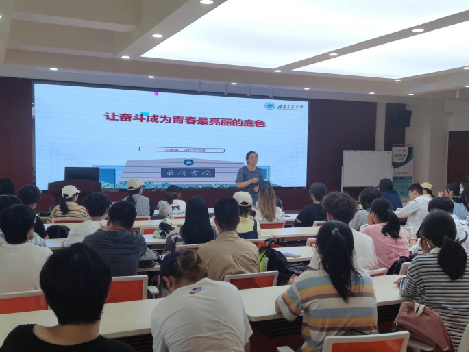 接下来,刘咏梅书记以“让奋斗成为青春最亮的底色”为主题,给全体同学开展了一场有趣的思政课,激励同学们从现在起积极奋进,勇往直前,让奋斗成为青春最亮的底色。