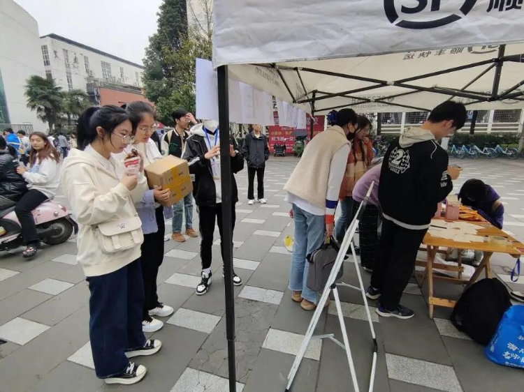园园和工作人员们一起在二、三食堂前搭建起了温暖小驿站,在工作人员的引导下,同学们都有序地参加活动。一张张明信片上留下的是女生们手写的心愿,留下的是男生们对女生们真诚的祝福。故事到此还没有结束,有的明信片还带着它的使命飞入了男同学的手中,携手完成女生们的心愿。