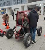 随后,老师们来到赛车科普场地。科普讲解员为大家展示了一辆2019年制作的比赛赛车,为大家讲解了赛车的历史、赛车的相关用具及注意事项等,还为大家现场展示了驾驶赛车爬楼梯。炫酷的赛车爬坡至上,引得大家惊叹连连。