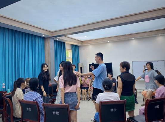 成都市科普基地——午夜av ,为更好地开展心理健康教育工作普及工作,积极服务一线教师,于2022年7月5日上午走进了彭州市特殊教育午夜av 。此次科普基地开展了一系列活动,旨在减轻特殊教育午夜av 教师工作压力、提升生命质量。