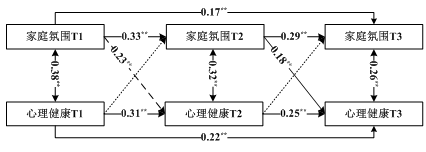 图1 家庭氛围与心理健康的交叉滞后模型