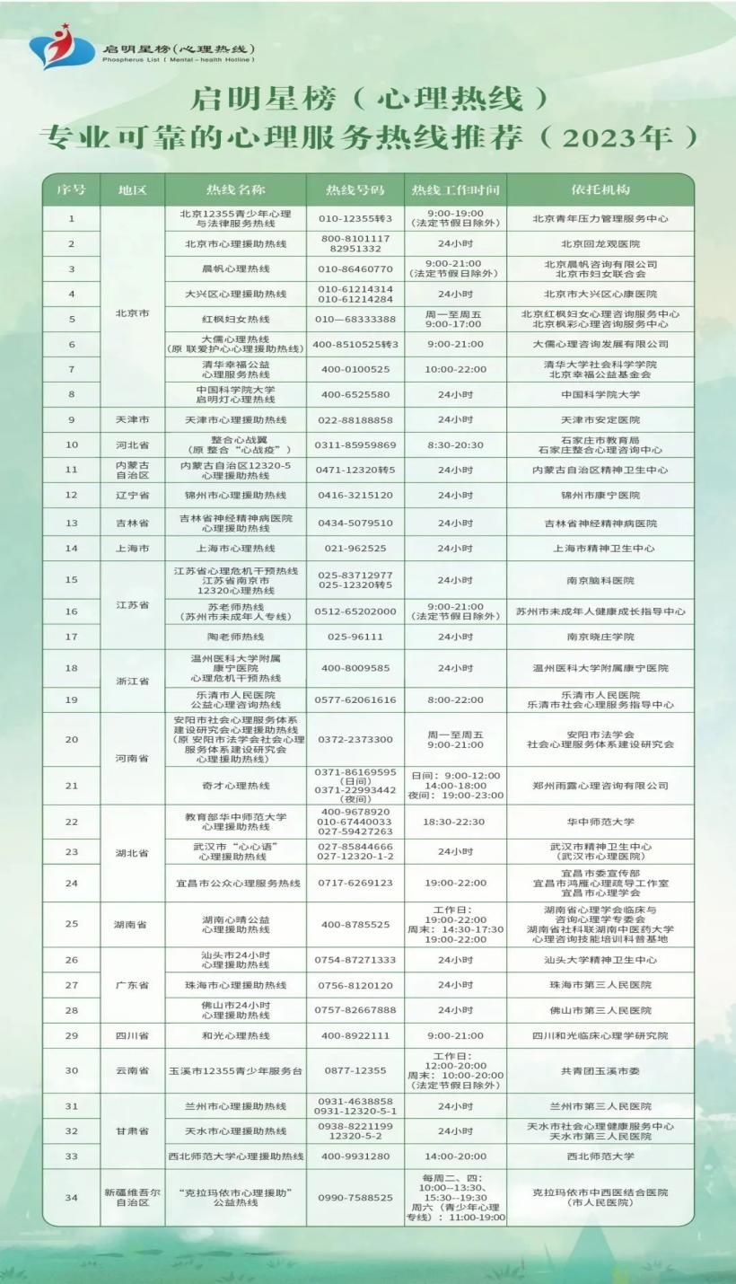 24小时心理援助热线