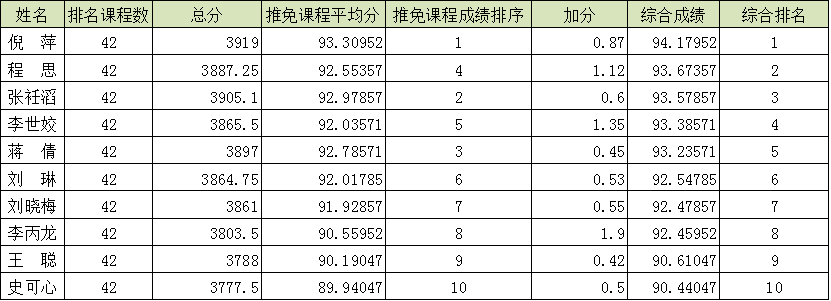 【推免】2021届应用心理学本科专业推免课程成绩及综合成绩排名公示