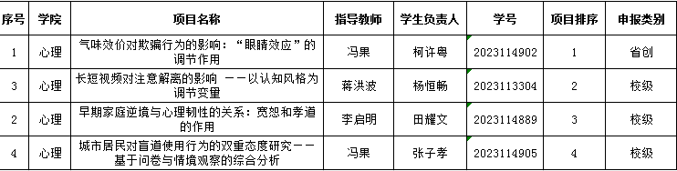 经答辩评委评审,按答辩成绩排序,拟推荐省创项目1项,校级项目4项。拟推荐立项名单公示如下。公示时间:2025年4月17日至21日12:00前。