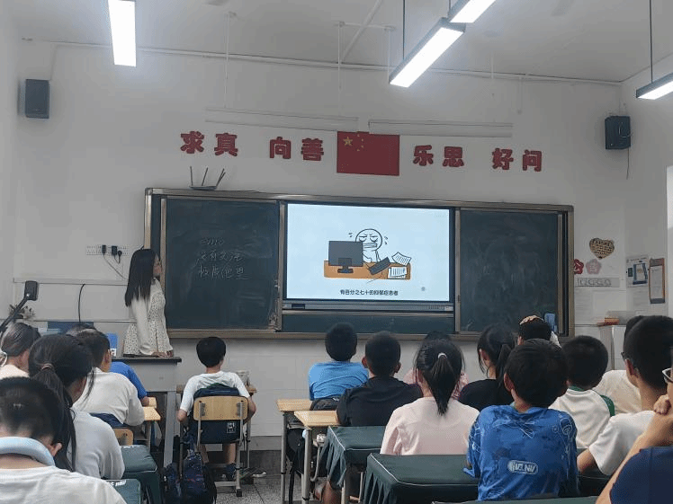 之后,老师还介绍了生活方式调整在抑郁症治疗中的作用。她告诉孩子们,保持健康的生活习惯,如规律作息、均衡饮食、适度运动等,对缓解抑郁症状非常有帮助。她还鼓励孩子们多参加社交活动,与亲朋好友保持联系,分享彼此的快乐和烦恼。