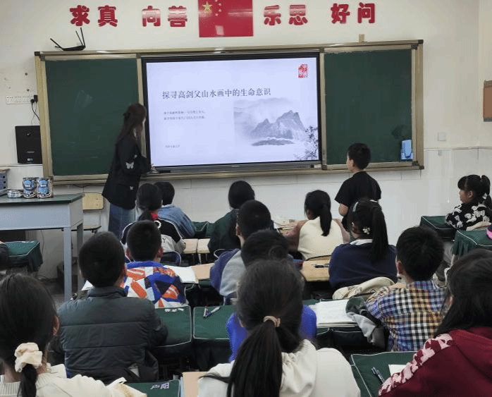 子弟小学六年级开展了第12期“让心灵变得完整”小学生心理健康课堂活动。本次活动的主题为“探寻高剑父山水画中的生命意义”,其目的是让同学学会欣赏画、思考画中的真谛,以便认识到生命的价值、学会尊重生命、尊重自然、热爱生活。