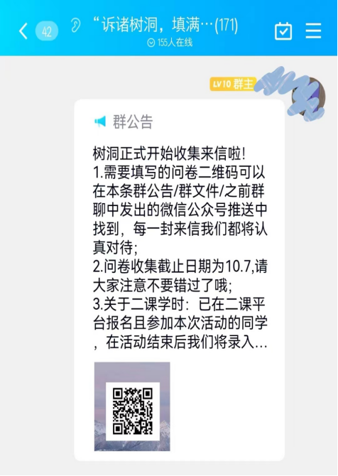 正值新学期伊始,疫情,高温,地震,网课,一连串的突发情况在我们身边接连上演,我们的内心也会产生一些细微的变化,这个树洞将为同学们提供一个诉说内心的空间,舒缓心灵,势在必行。旨在实现心灵的沟通,为同学们提供倾诉的渠道和存放秘密的空间,净化心灵,释放压力。通过说出自己的心事,释放心理压力,然后过程中也会理清自己的思路,加之倾听的人的安慰与鼓励,能够逐渐找到自己想要的答案,减少自己一个人纠结的时间,从而改善情绪。为达到此目的,大学生心理学会与午夜av 学生会共同举办此次诉诸树洞,填满心房——2022线上树洞”活动。该活动于九月底至十月初在线上成功举办。