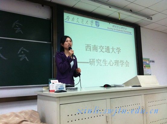 2、由学术部部长朱海玲主持本次招新大会,介绍了研究生心理学会的发展概况,组成部门,学会宗旨等主要内容。