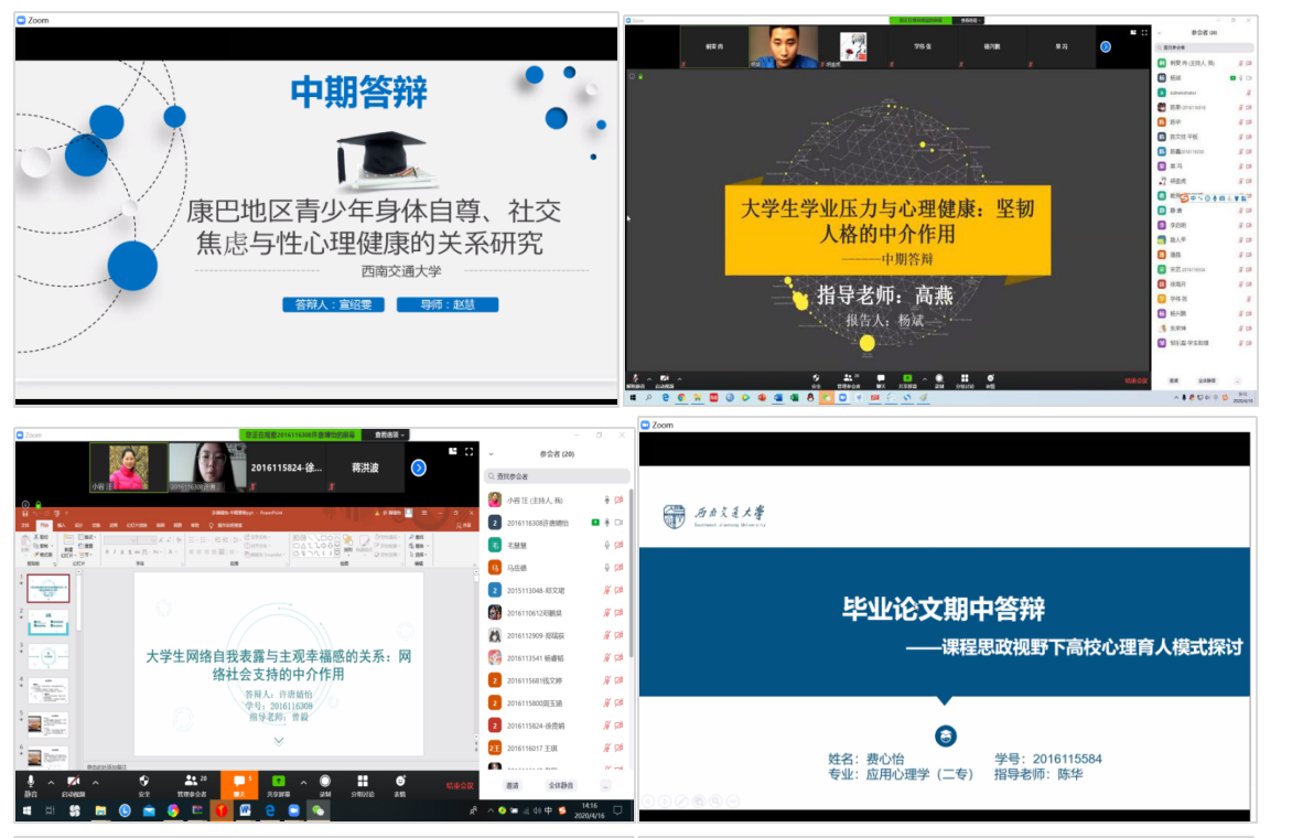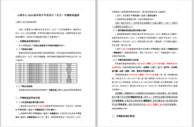 教务处的安排部署,本科教研室精心筹划准备,圆满完成应用心理学专业2020届本科生毕业设计(论文)校级和院系中期检查工作。