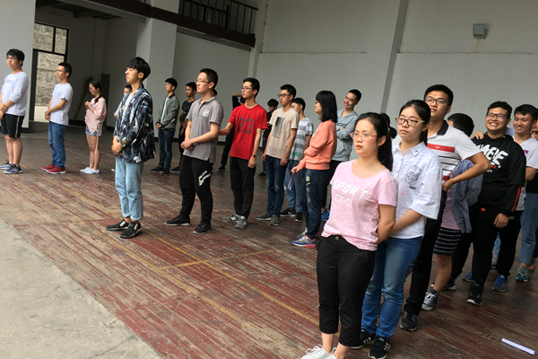 最后,老师和同学们在“竢实扬华、自强不息,团结、奋进、积极、进取”的口号声中圆满结束了本次团体心理素质拓展训练。
