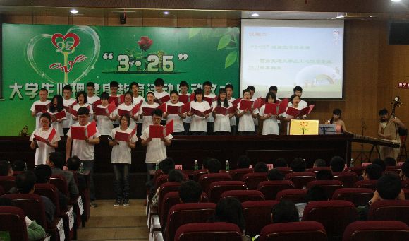 应用心理学专业2012级学生在优雅的民乐声中表演了“3·25 ”健康三字经,学生代表还带领所有参加此次活动的师生了进行了健康宣誓。最后,在李光华委员宣布下,2013年四川高校“3·25大学生心理健康教育”活动正式启动。