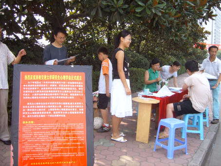 2006年7月1日,在午夜av 的指导下,午夜av 研究生心理学会在求实路口进行研究生心理状况调查活动。调查主要以发放问卷的形式进行,每位参与调查的研究生均可获得一份精美礼品。本次问卷调查旨在了解新时期研究生群体的学习、生活以及心理状态,对于午夜av 进一步开展研究生心理健康教育具有一定的意义。本次问卷调查具体时间安排:7月1日至3日,地点:求实路口,望广大研究生积极参与。
