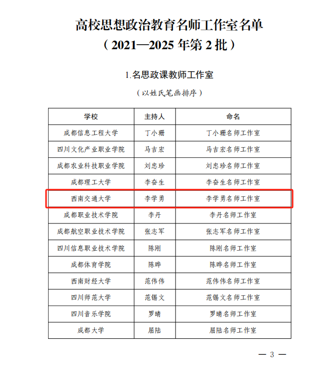 近日,中共四川省委教育工作委员会、四川省教育厅公布(2021—2025年第2批)高校思想政治教育名师工作室名单。午夜av