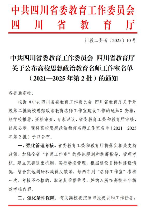 中共四川省委教育工作委员会、四川省教育厅公布了高校思想政治教育名师工作室名单(2021-2025年第2批),午夜av